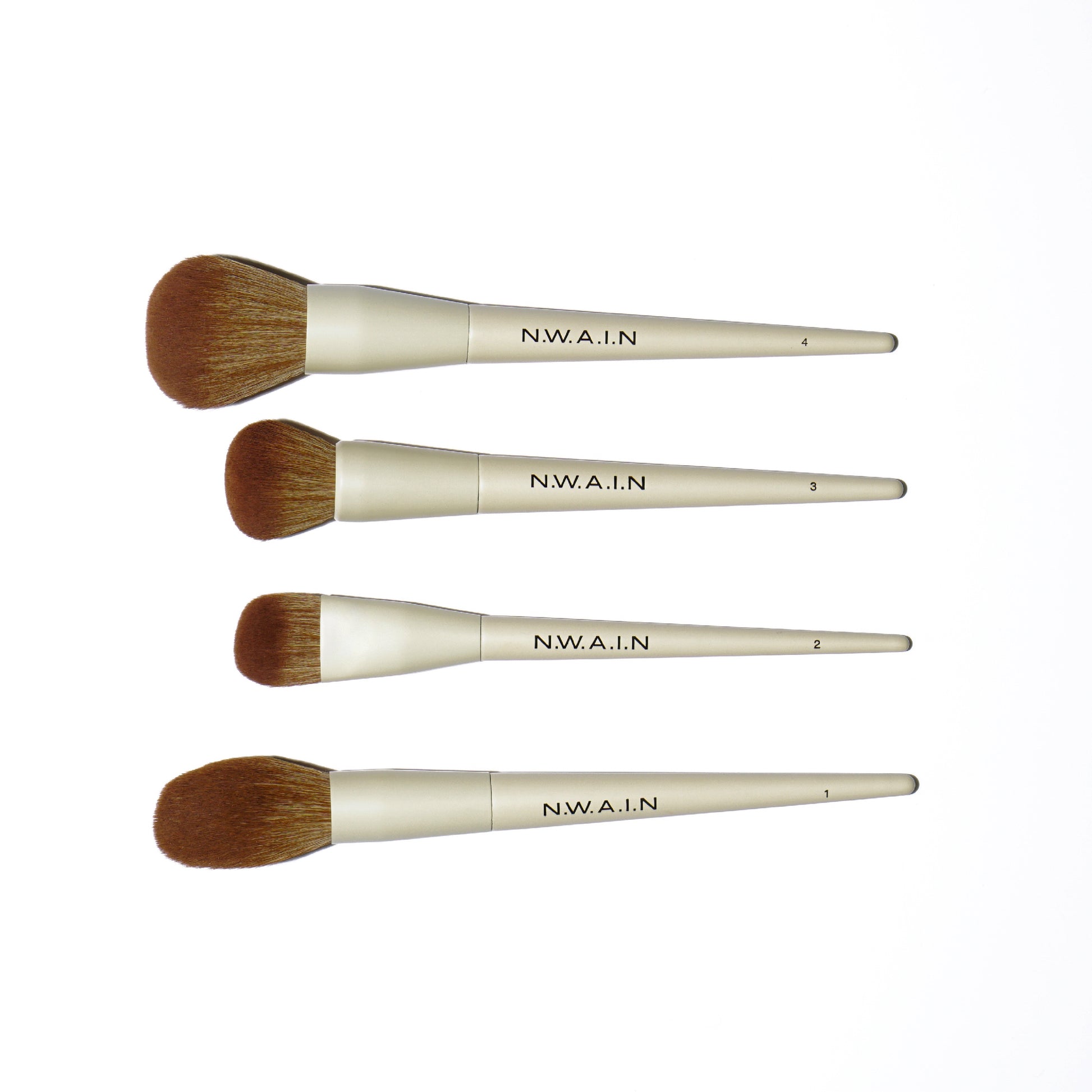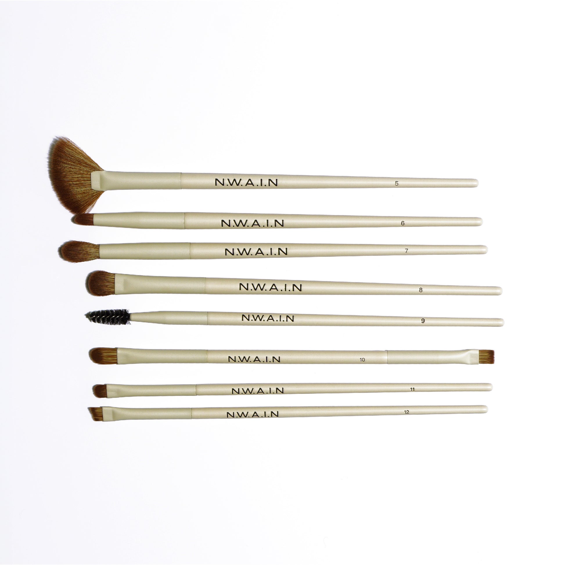 The N.W.A.I.N Essentials Collection offers 12 indispensable brushes tailored for your daily beauty regimen. Accompanied by a sleek waterproof makeup bag, this set combines functionality with elegance.
